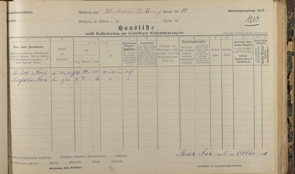 Haushaltsliste 1912, Band II., Abteilung 4, A 275