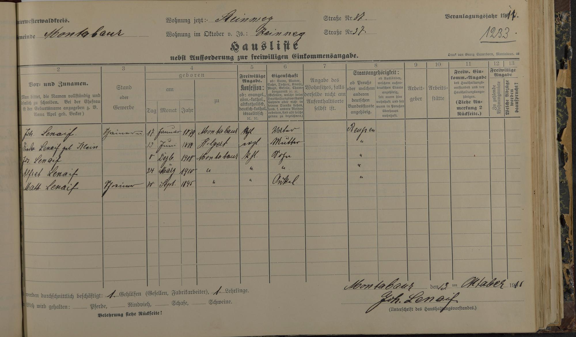 Haushaltsliste 1912, Band II., Abteilung 4, A 275