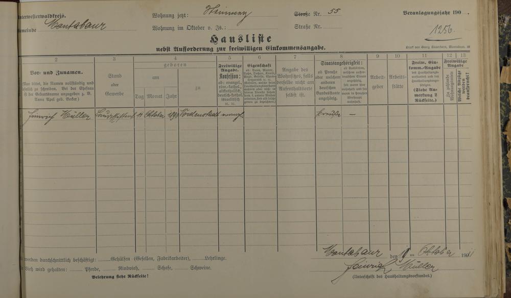 Haushaltsliste 1912, Band II., Abteilung 4, A 275