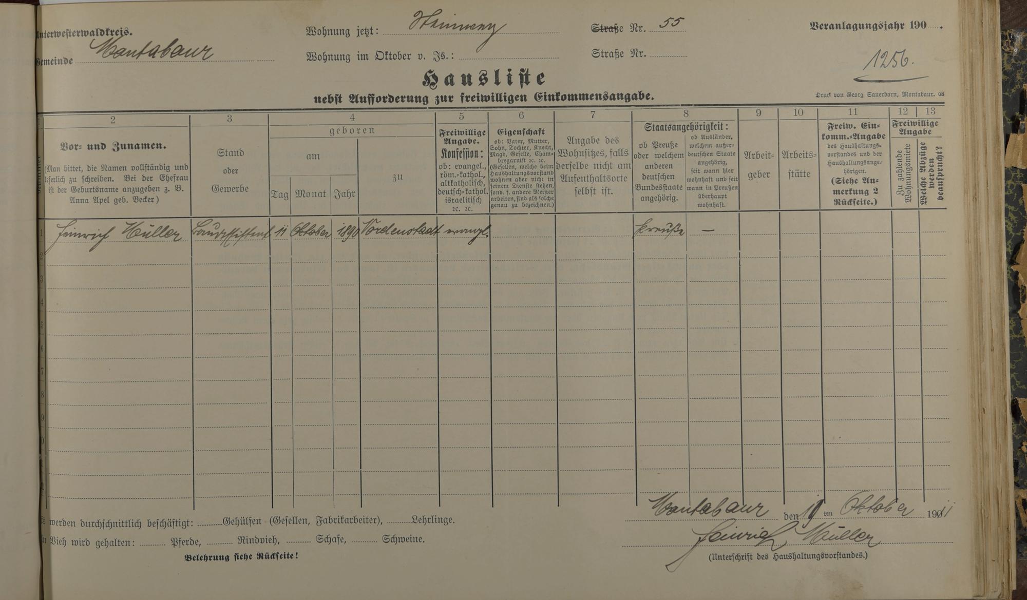 Haushaltsliste 1911/12, Sauertalstraße bis Werbhausgasse sowie Mühlen
