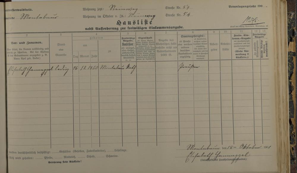 Haushaltsliste 1912, Band II., Abteilung 4, A 275