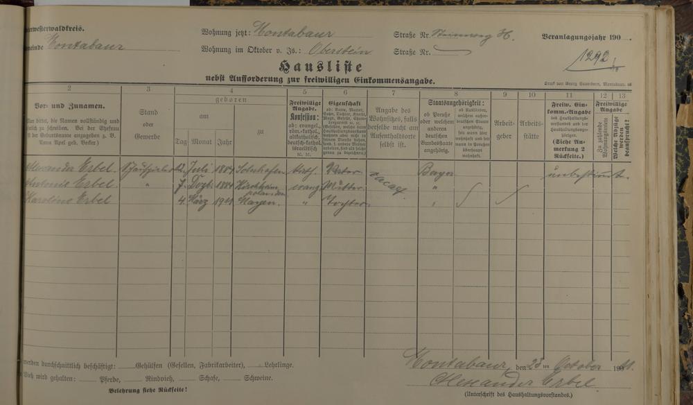Haushaltsliste 1912, Band II., Abteilung 4, A 275