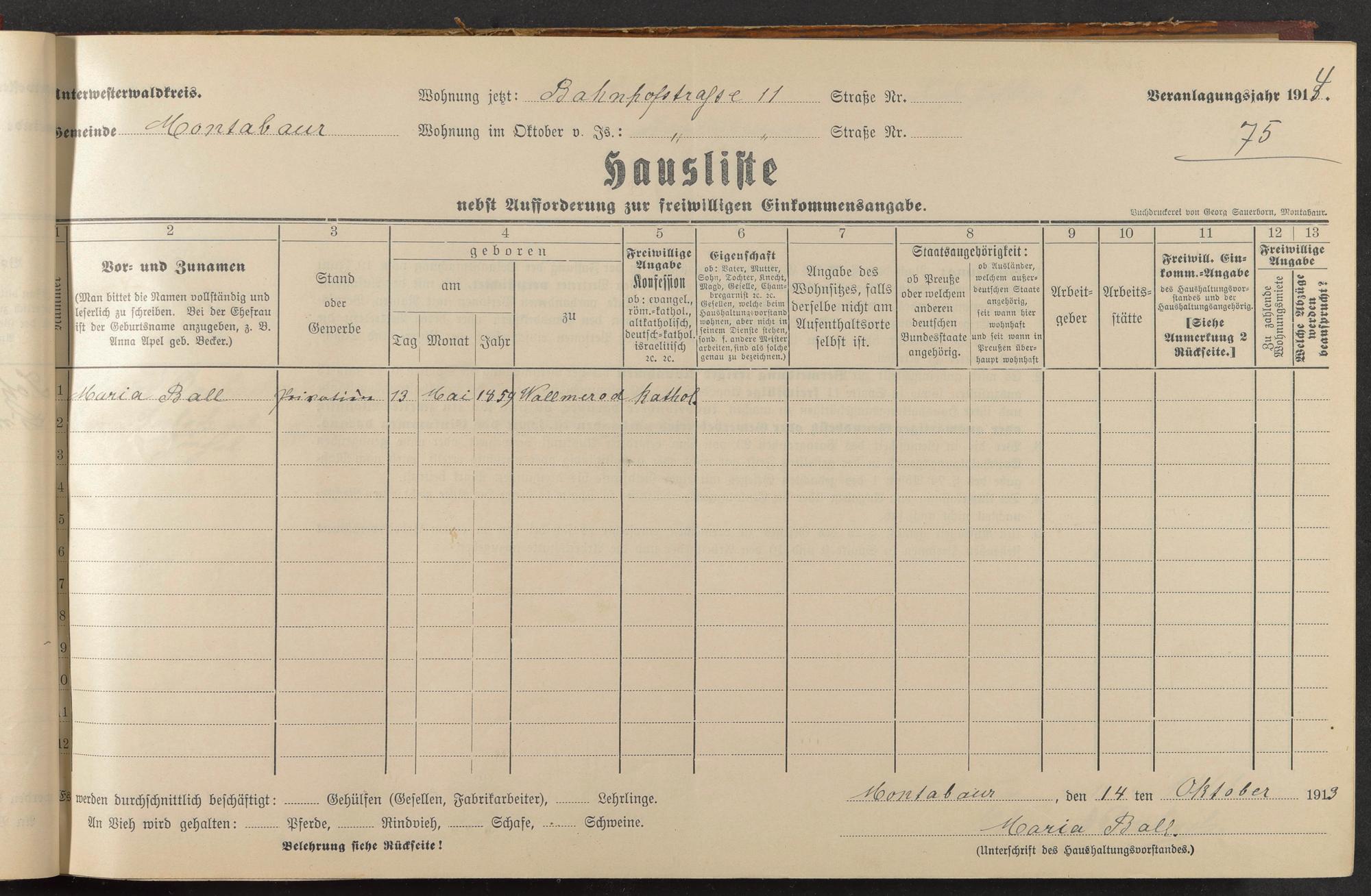 Haushaltsliste 1914, Band I., Abteilung 4, A 278