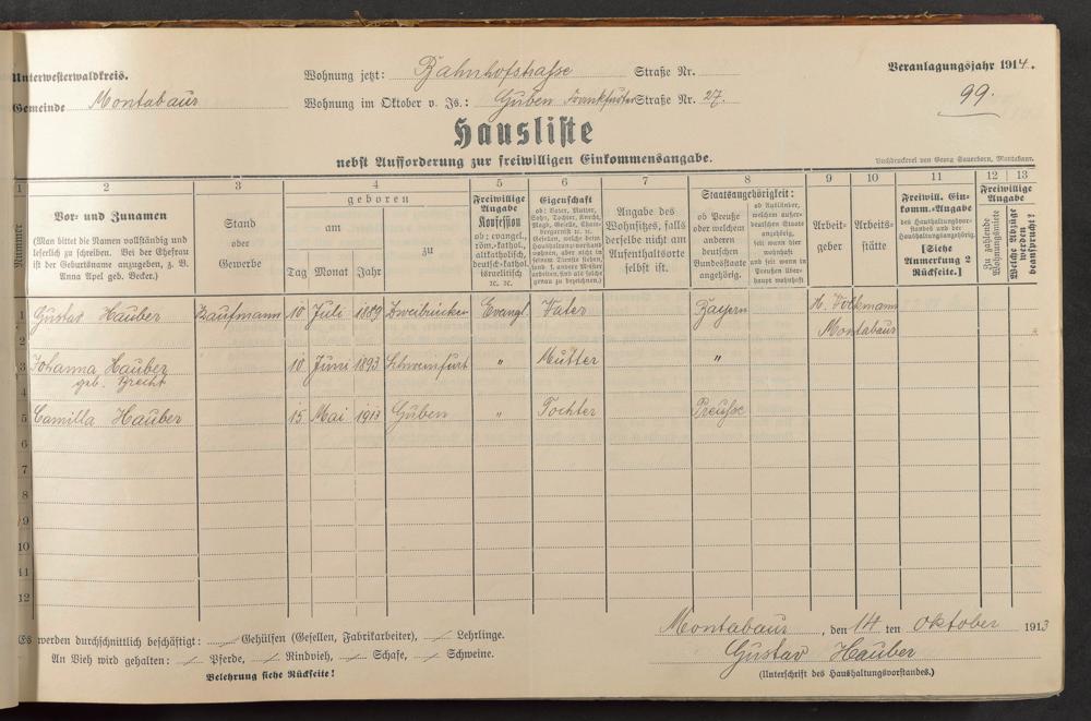Haushaltsliste 1914, Band I., Abteilung 4, A 278