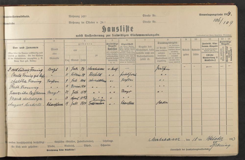 Froning, Ludwig Dr. med Froning, Paula geb. Rohr Froning, Marta Froning, Ruth Paffhausen, Franziska Molsberger, Maria Rinderle, August