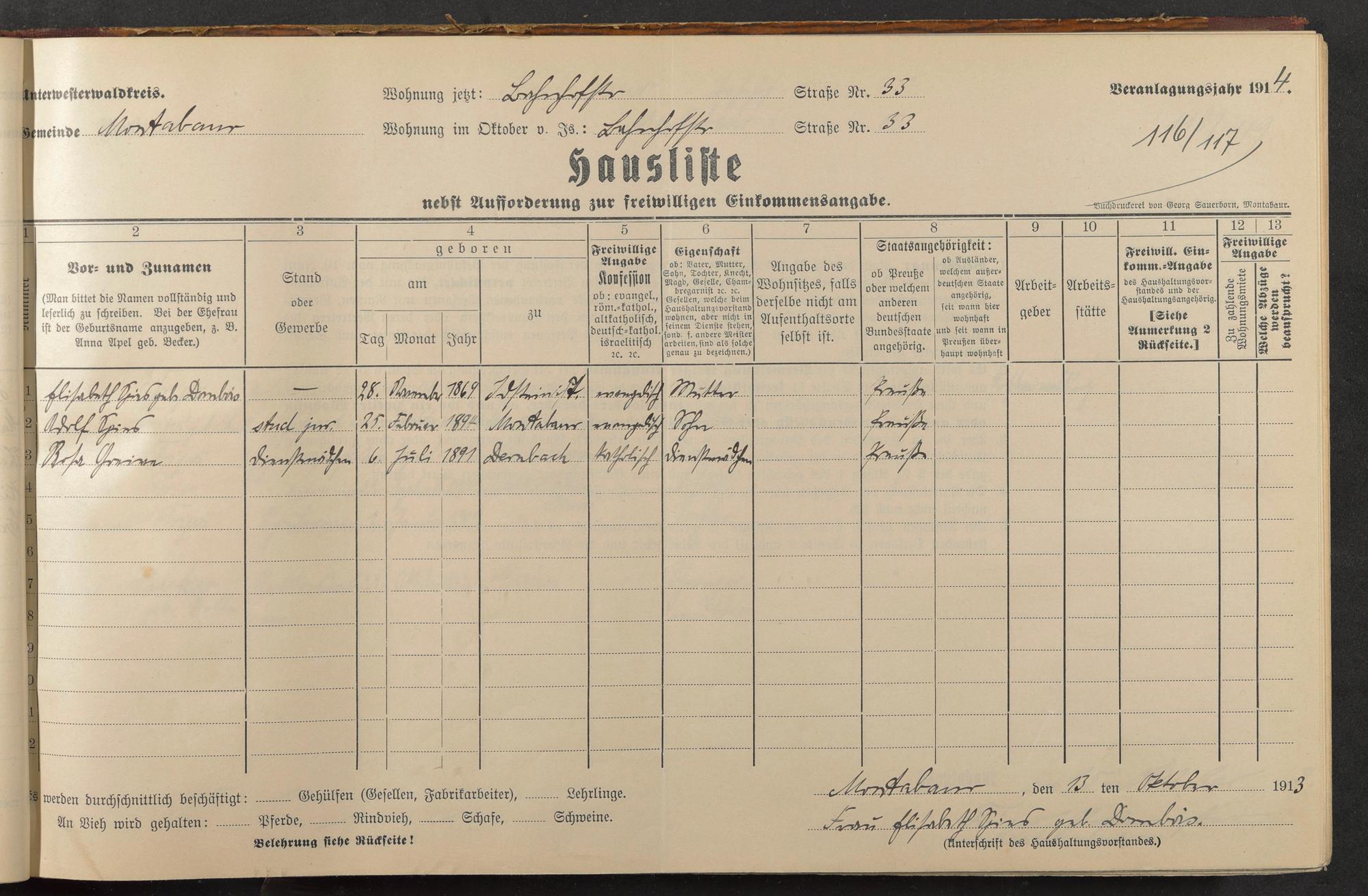 Haushaltsliste 1914, Band I., Abteilung 4, A 278