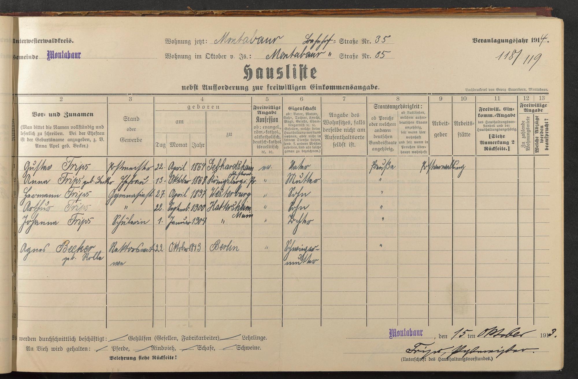 Trips, Gustav Trips, Anna geb. Becker Trips, Hermann Trips, Arthur Trips, Johanna Becker, Agnes geb. Rolle