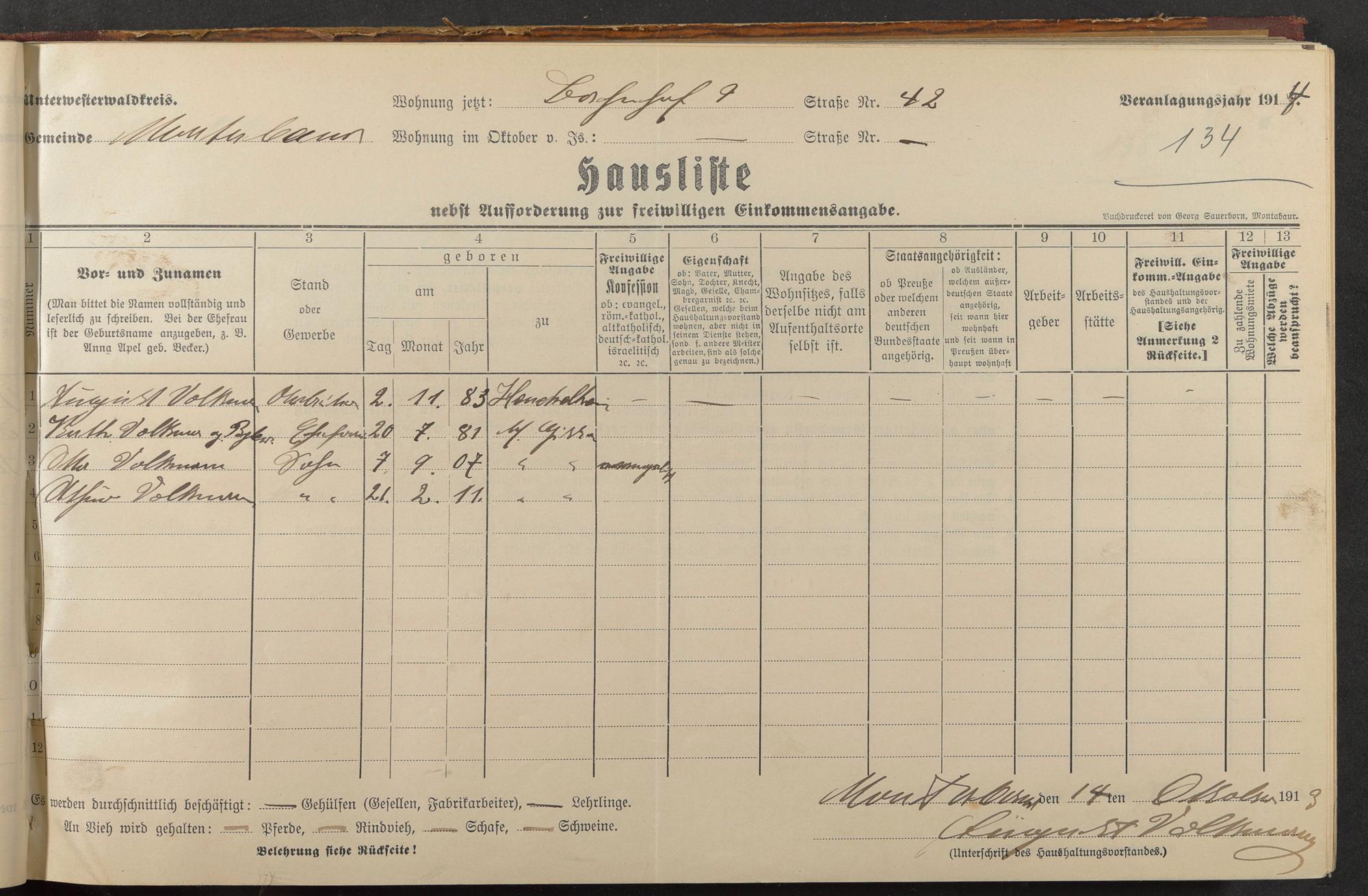 Haushaltsliste 1914, Band I., Abteilung 4, A 278