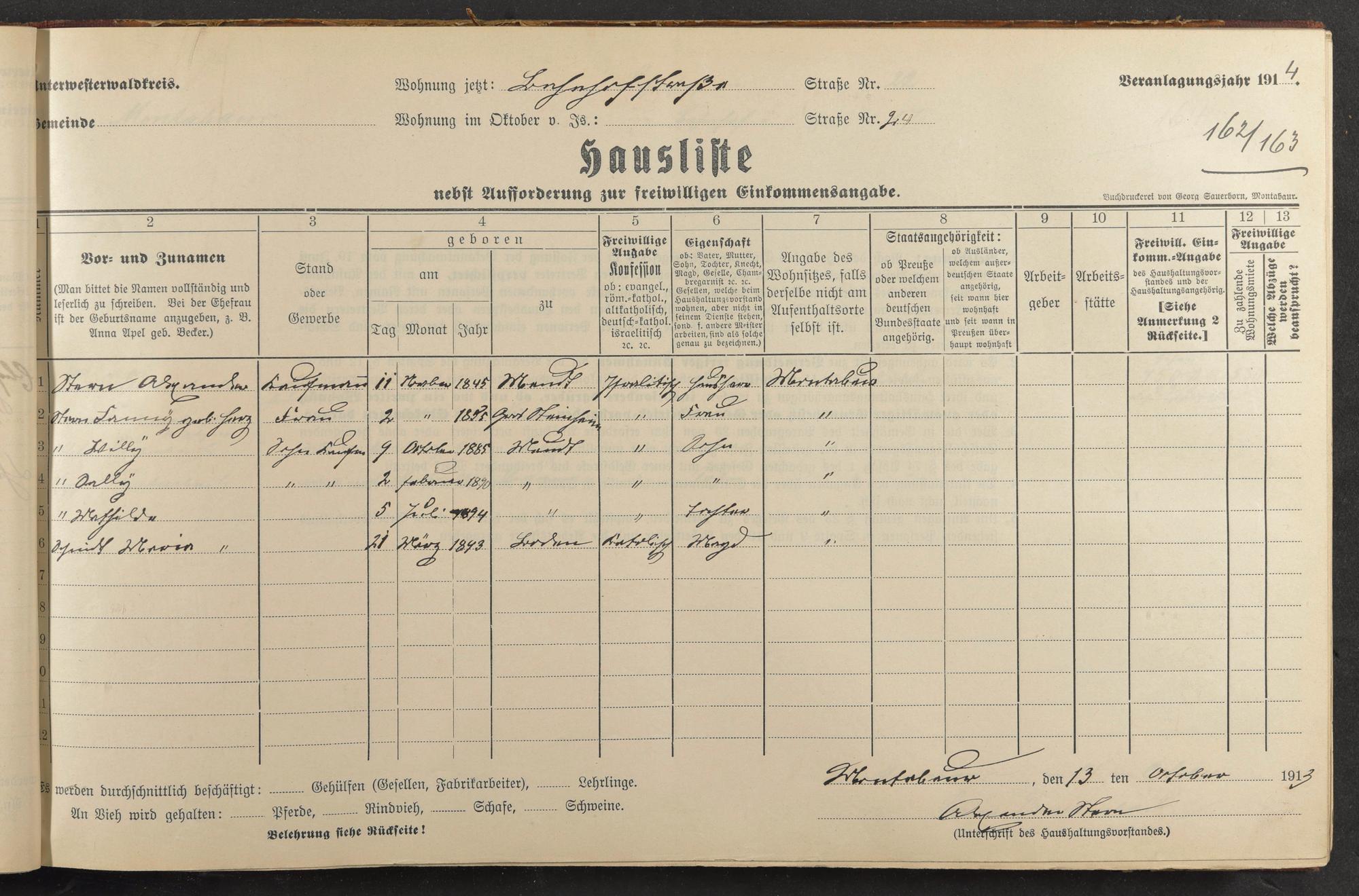 Haushaltsliste 1914, Band I., Abteilung 4, A 278