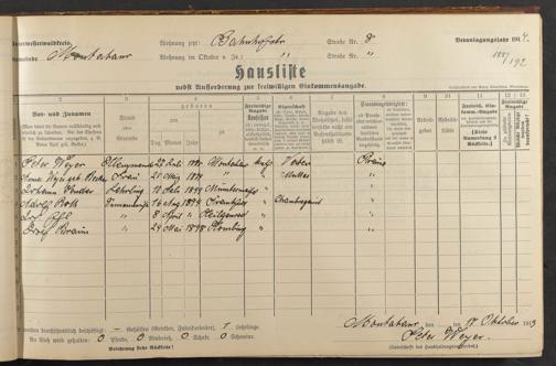 Haushaltsliste 1914, Band I., Abteilung 4, A 278