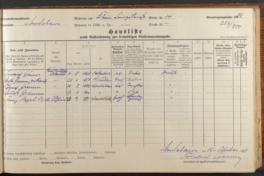 Haushaltsliste 1914, Band I., Abteilung 4, A 278