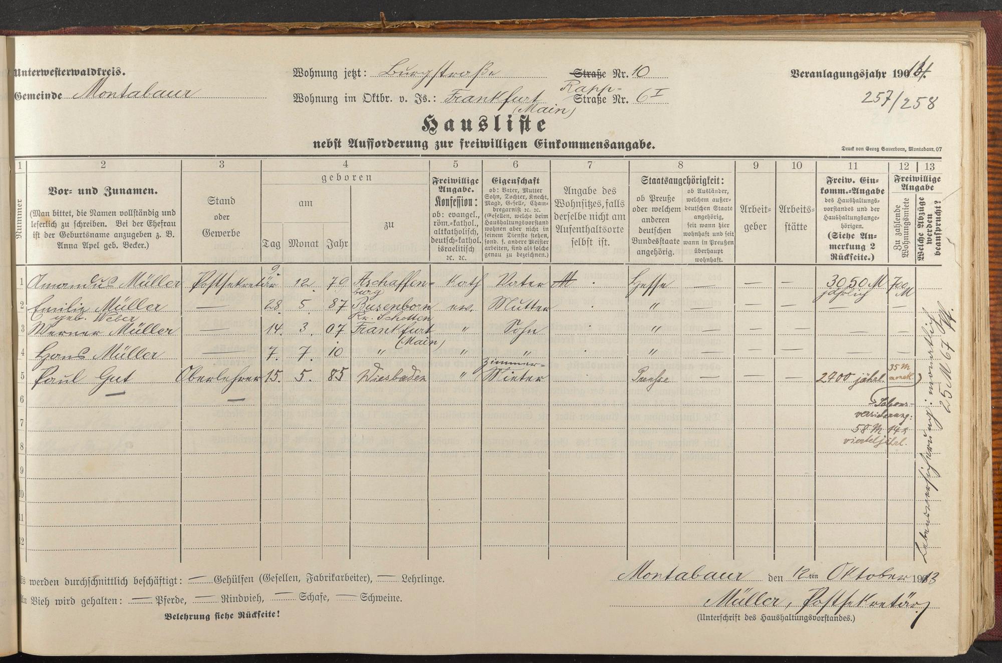 Müller, Amandus Müller, Emilie geb. Weber Müller, Werner Julius Otto Wilh. Müller, Hans Theodor Gut, Paul