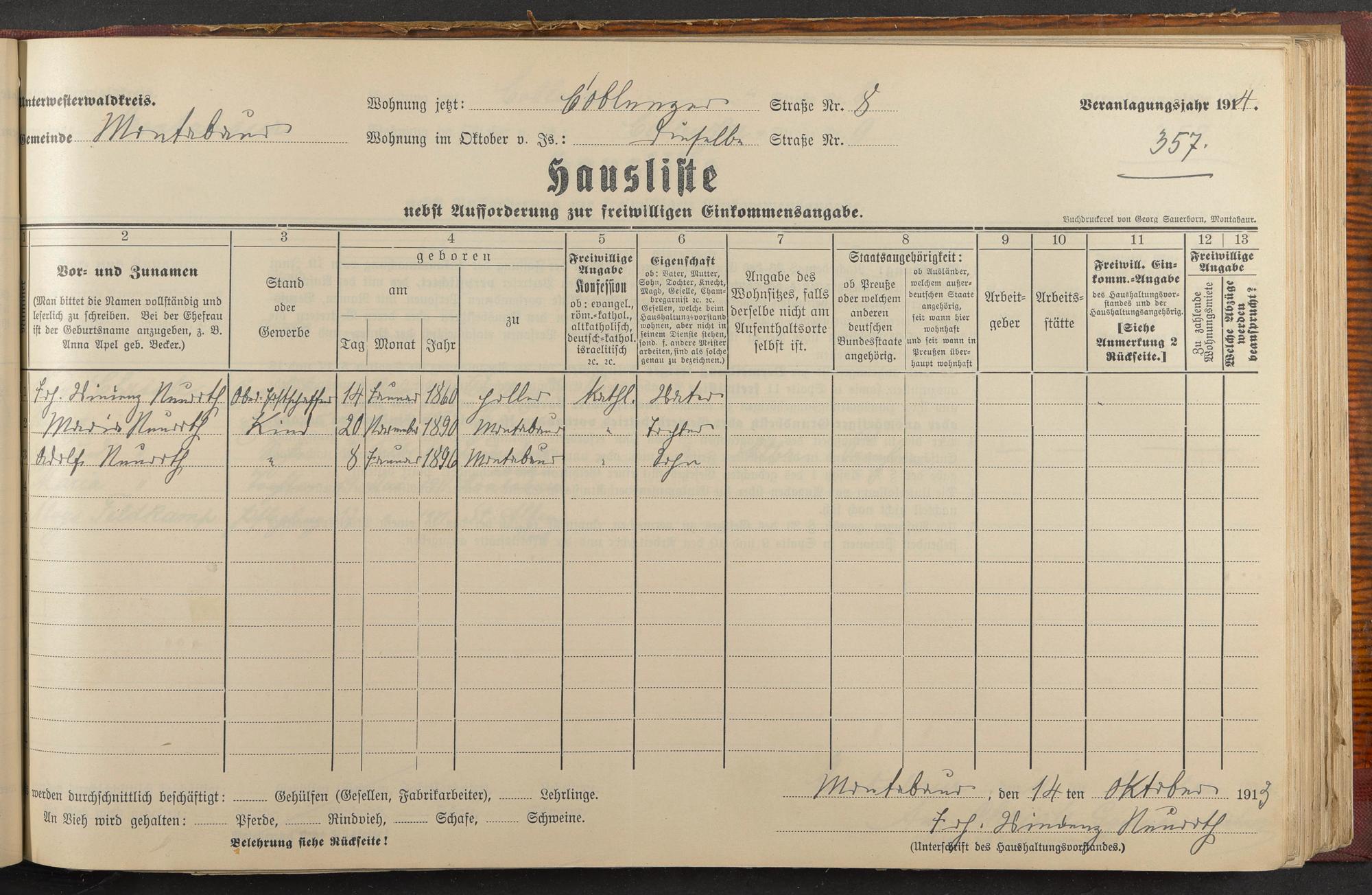 Haushaltsliste 1914, Band I., Abteilung 4, A 278
