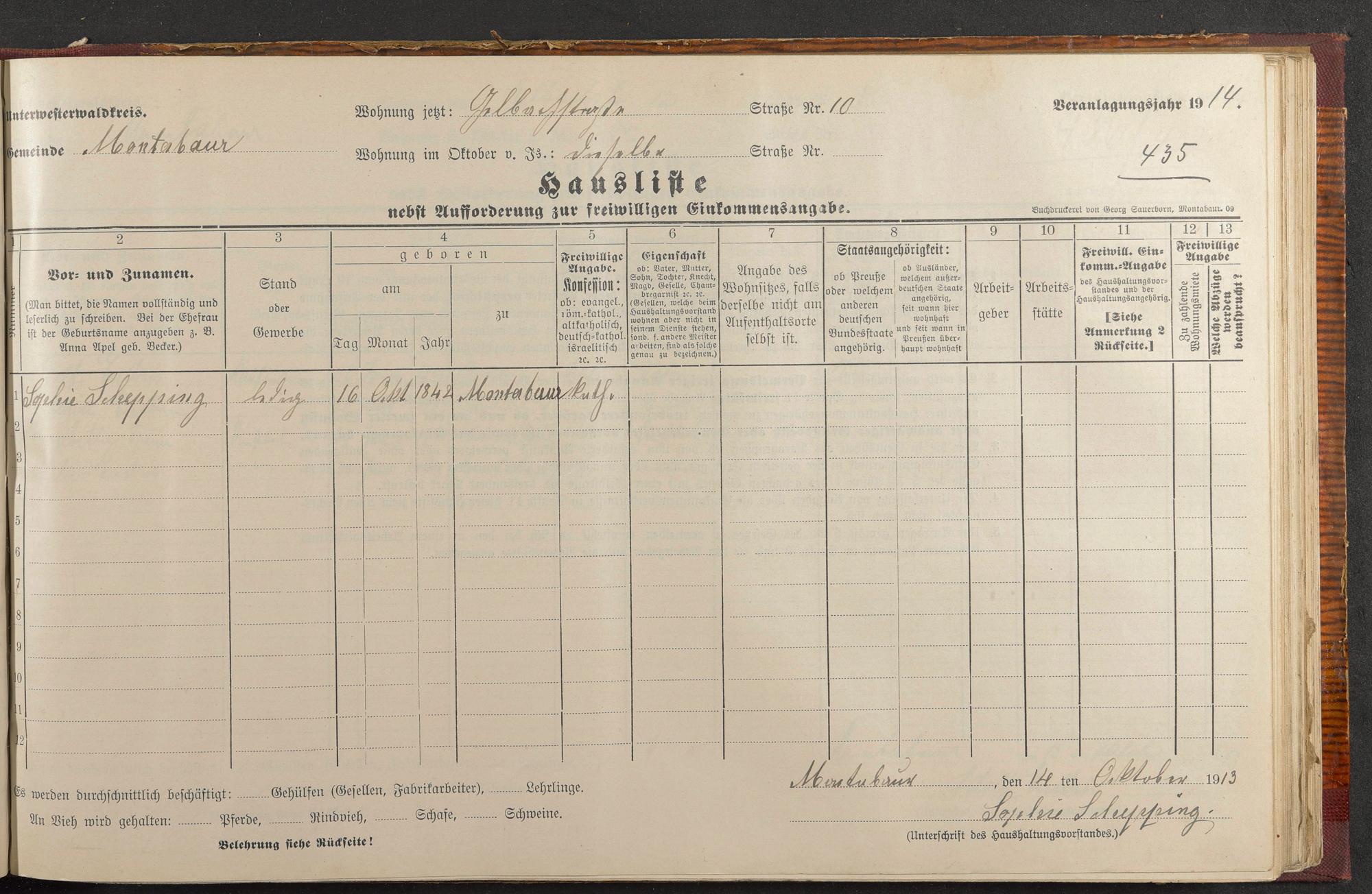 Haushaltsliste 1914, Band I., Abteilung 4, A 278