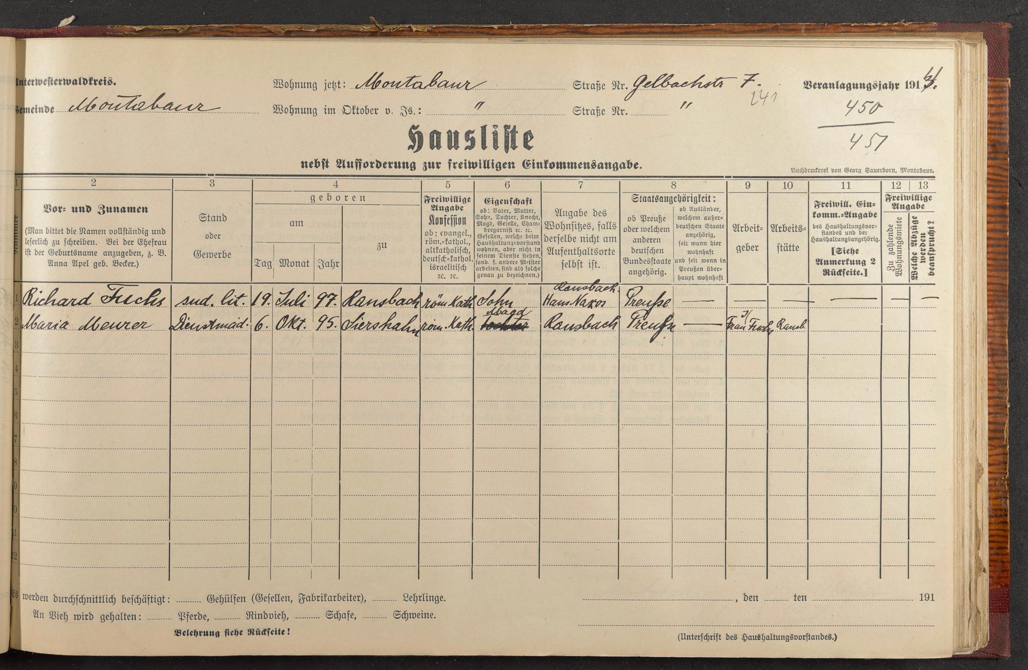 Haushaltsliste 1913/14, Kirchstraße bis Markt