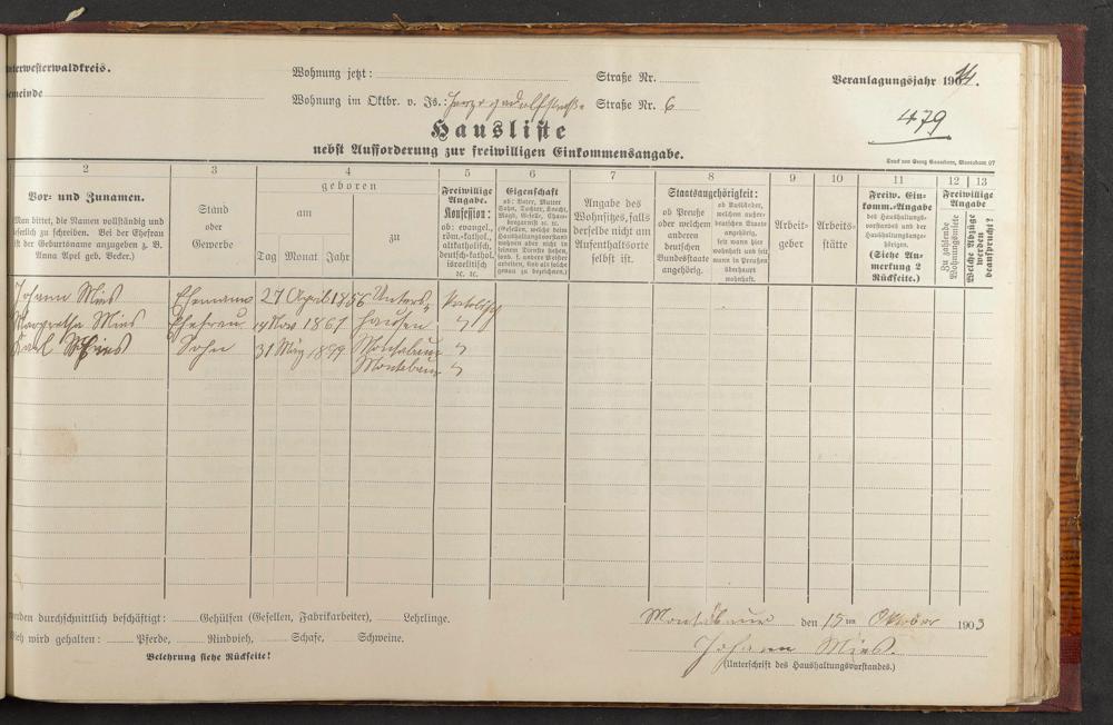 Haushaltsliste 1913/14, Coblenzer Straße bis Judengasse