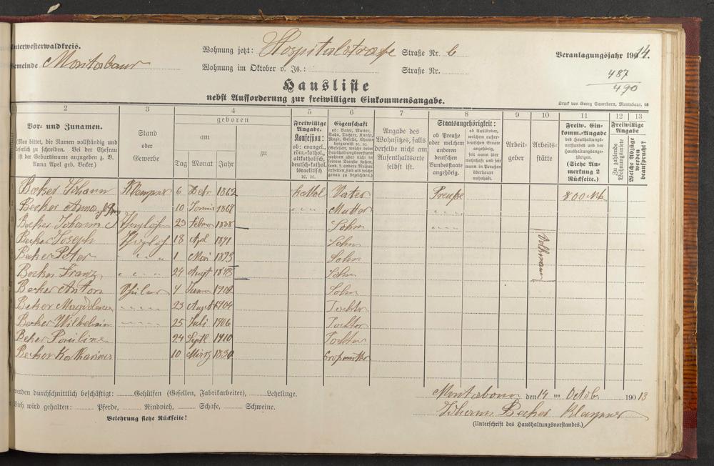 Haushaltsliste 1914, Band I., Abteilung 4, A 278 Haushaltsliste 1913/14, Coblenzer Straße bis Judengasse Hospitalstraße
