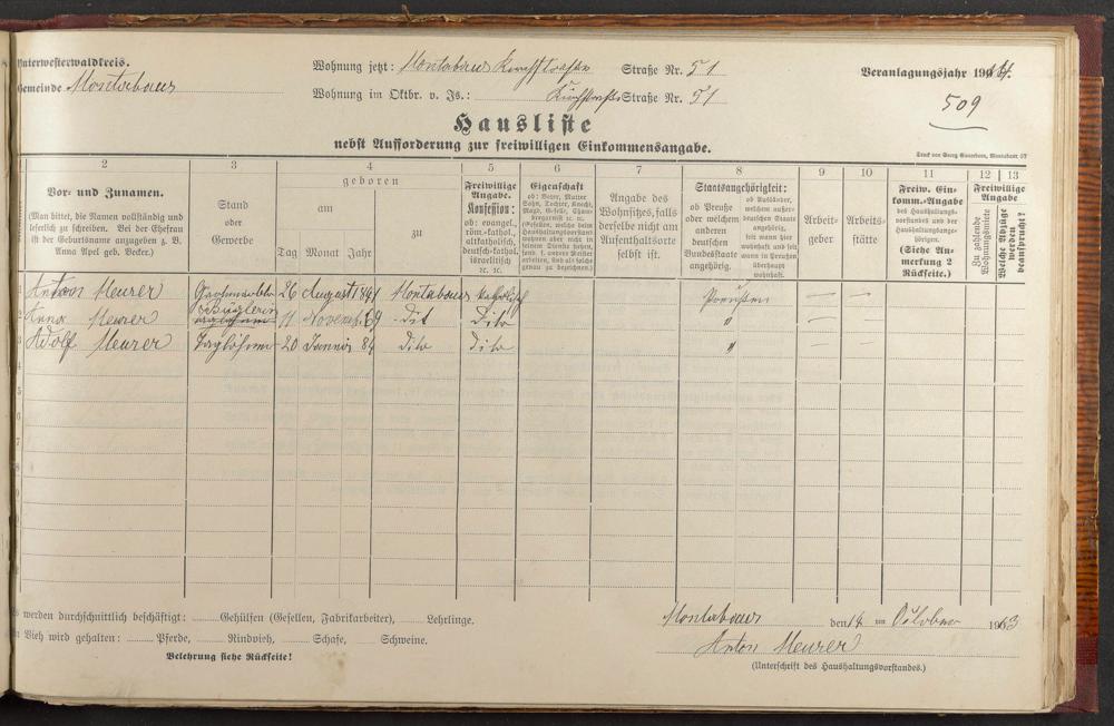 Haushaltsliste 1914, Band I., Abteilung 4, A 278