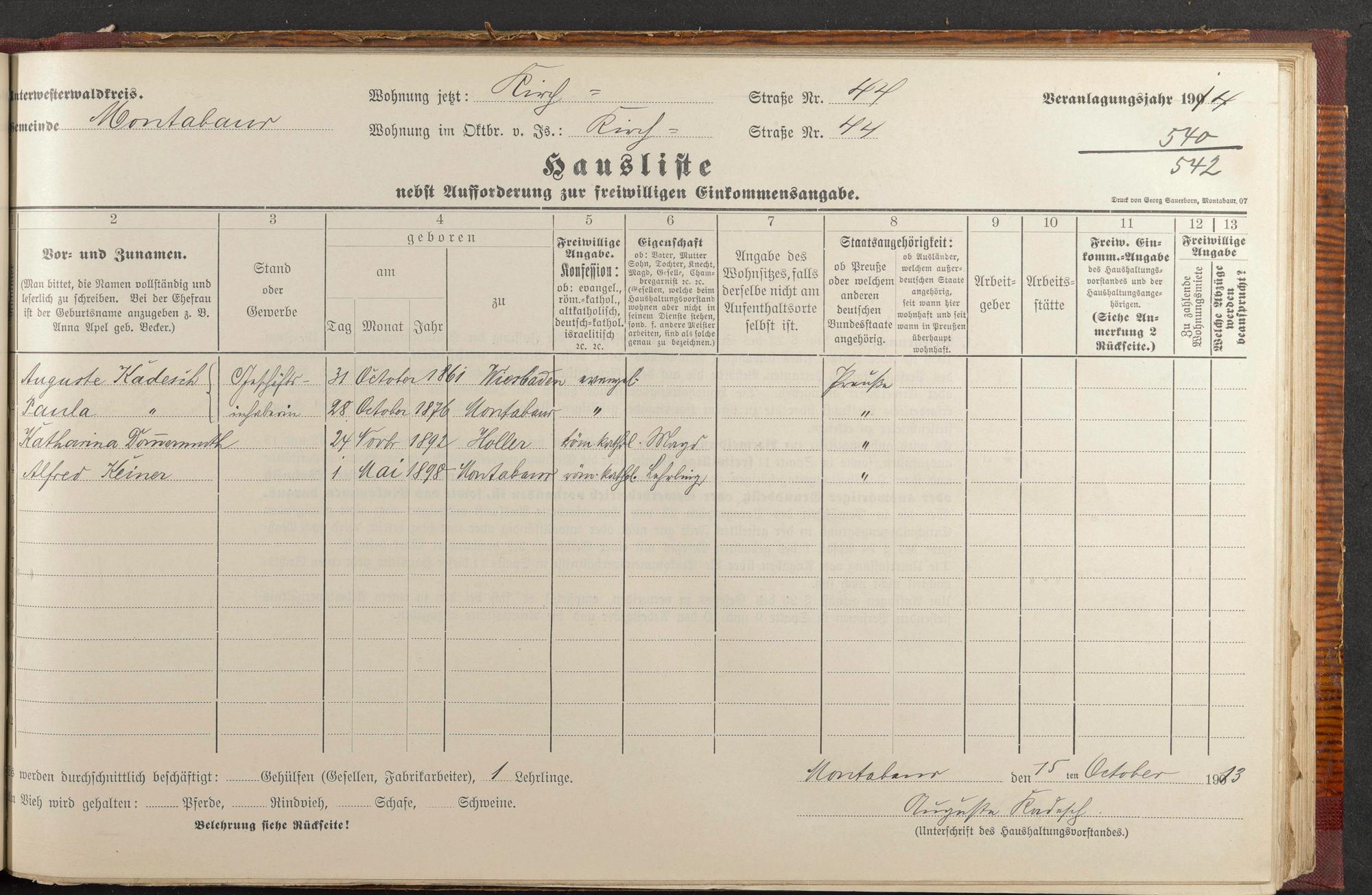 Haushaltsliste 1914, Band I., Abteilung 4, A 278