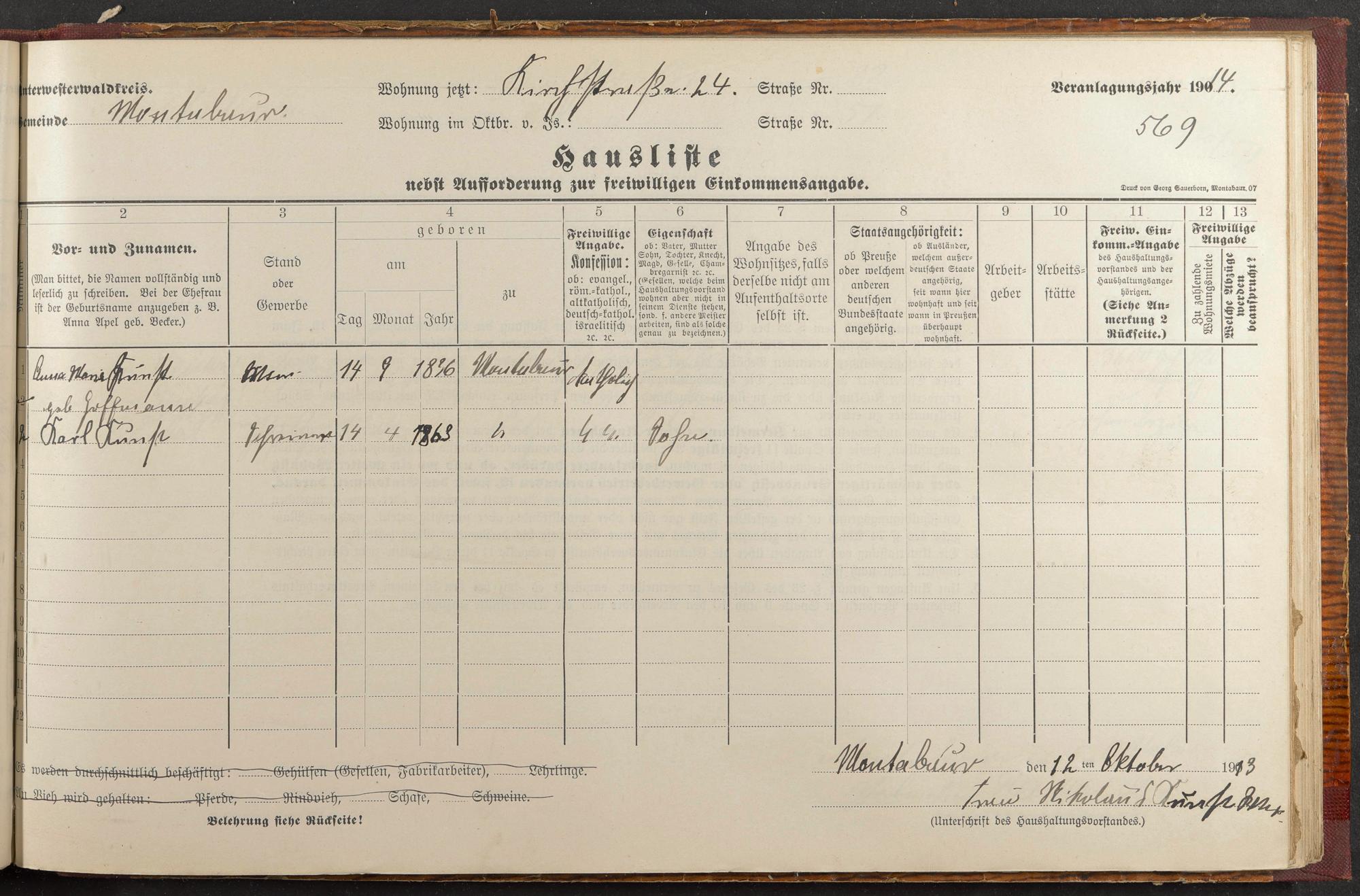 Haushaltsliste 1914, Band I., Abteilung 4, A 278