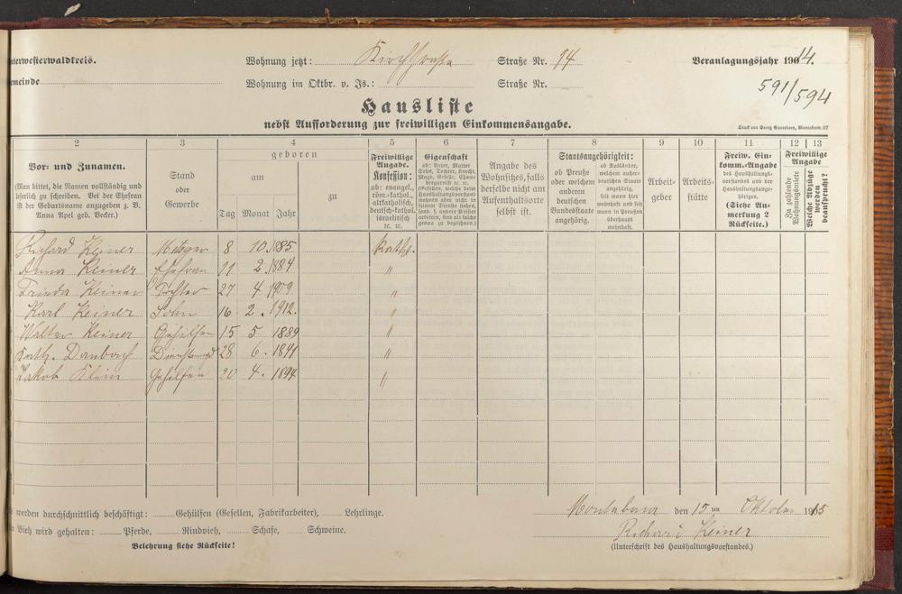 Keiner, Richard Keiner, Anna geb. Sabel Keiner, Frieda Keiner, Karl Keiner, Walter Daubach, Katharina Klein, Jakob