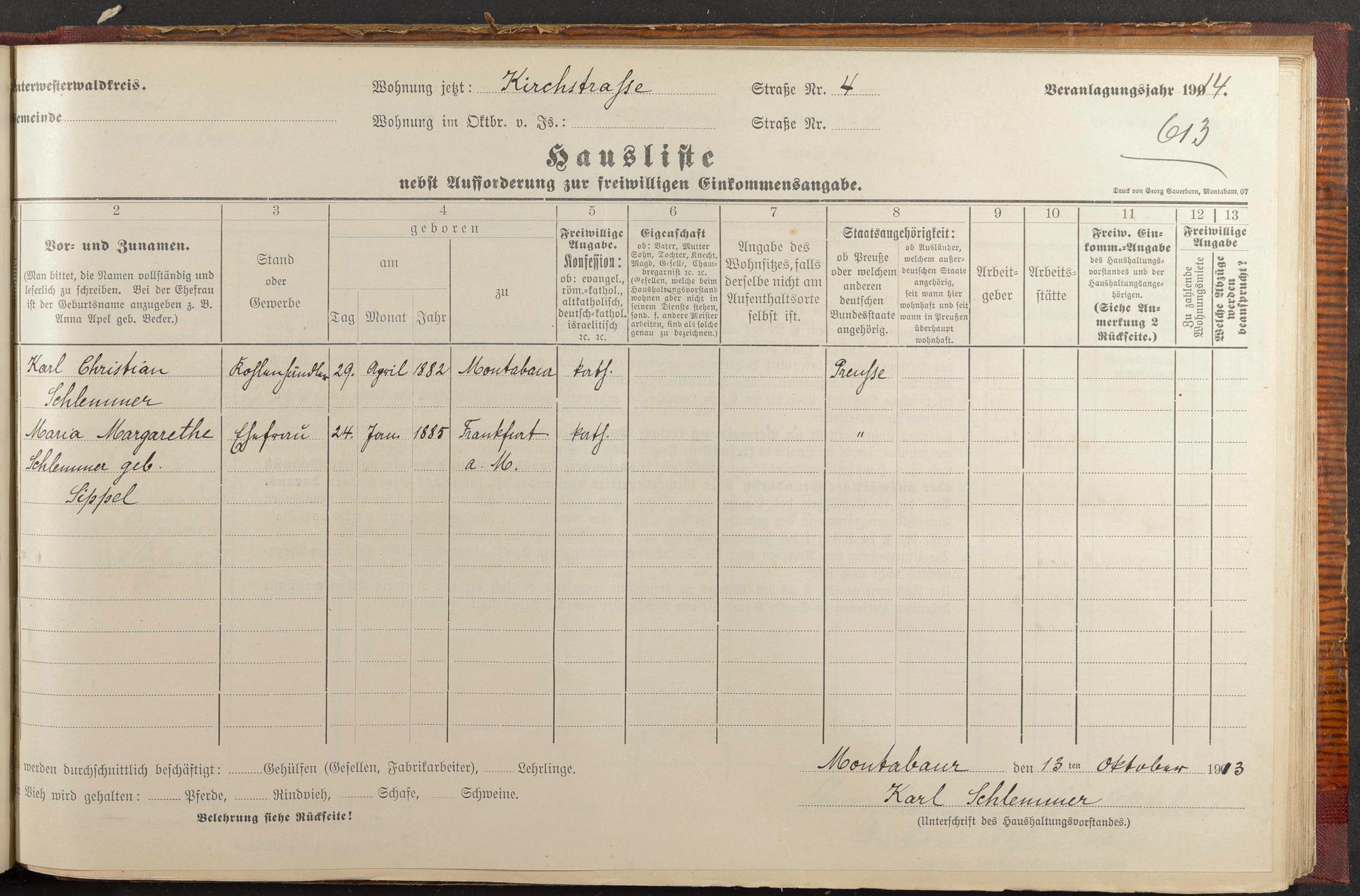 Haushaltsliste 1913/14, Kirchstraße bis Markt