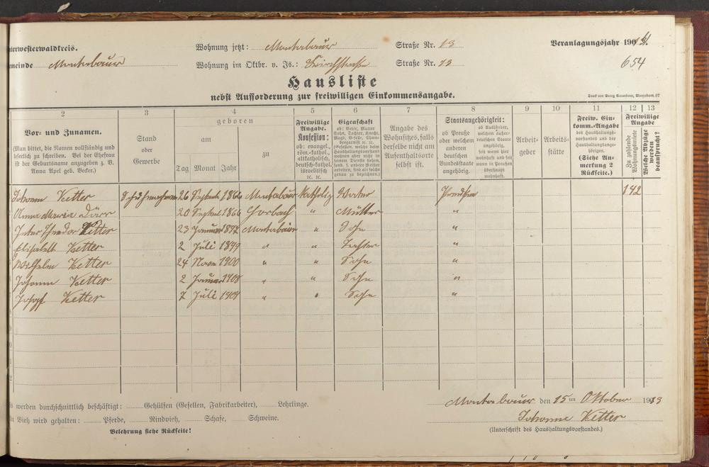 Haushaltsliste 1913/14, Kirchstraße bis Markt