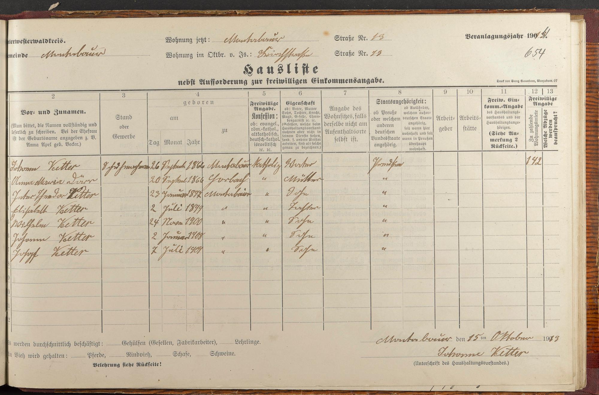 Haushaltsliste 1914, Band I., Abteilung 4, A 278 Haushaltsliste 1913/14, Kirchstraße bis Markt Kirchstraße