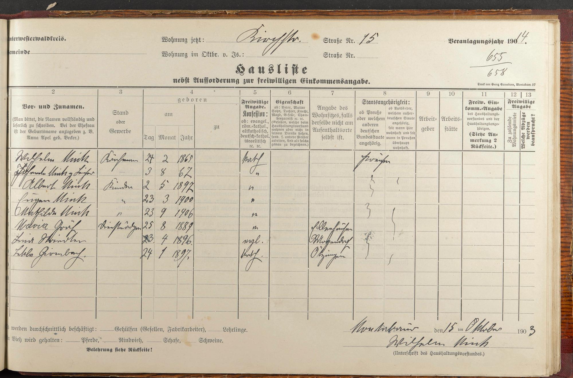 Mink, Wilhelm Mink, Johanna geb. Leicher Mink, Albert Johannes Mink, Eugen Gustav Mink, Mathilde Anna Gräf, Maria Ströder, Lina Quirmbach, Tekla