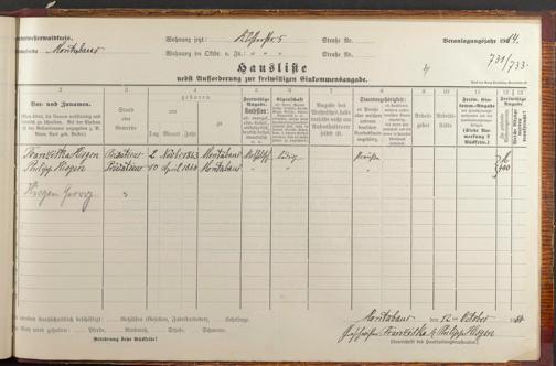 Haushaltsliste 1914, Band I., Abteilung 4, A 278