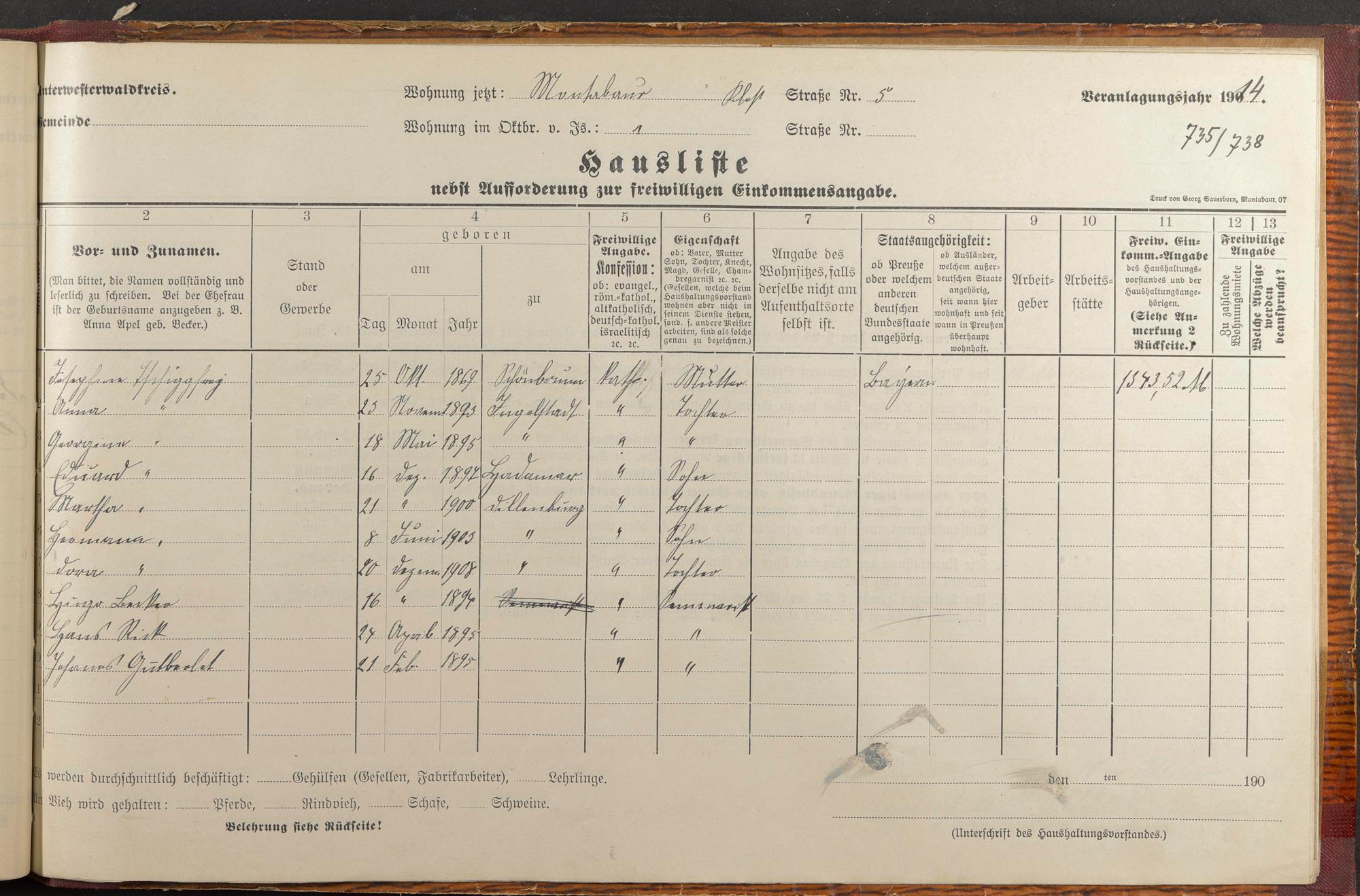 Tschiggfrey, Josefine geb. Schraut Tschiggfrey, Anna Tschiggfrey, Georgine Tschiggfrey, Eduard Tschiggfrey, Martha Tschiggfrey, Hermannn Tschiggfrey, Dorothea Becker, Hugo Rick, Hans Gutberlet, Johannes