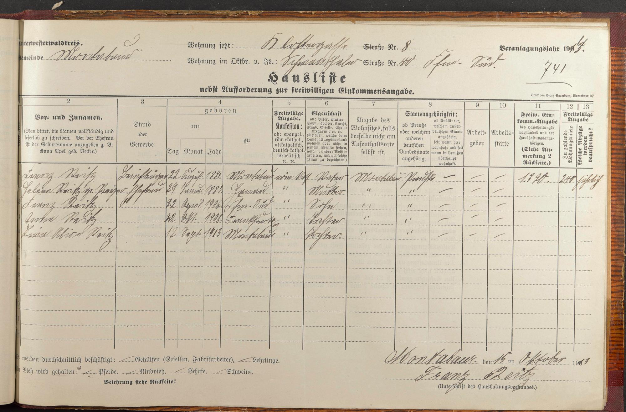 Haushaltsliste 1914, Band I., Abteilung 4, A 278