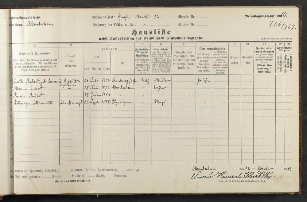 Haushaltsliste 1914, Band I., Abteilung 4, A 278