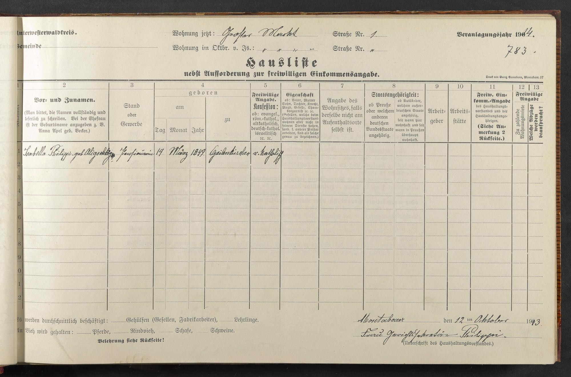 Haushaltsliste 1914, Band I., Abteilung 4, A 278