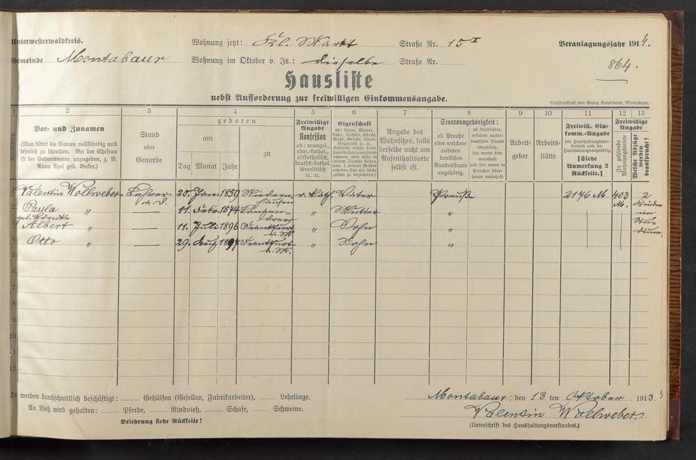 Haushaltsliste 1914, Band I., Abteilung 4, A 278