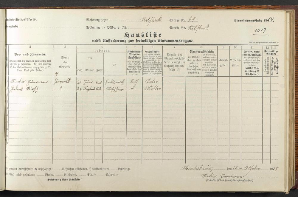 Haushaltsliste 1914, Band II., Abteilung 4, A 279