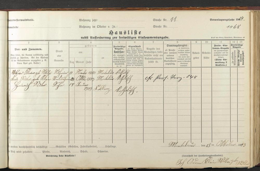 Haushaltsliste 1914, Band II., Abteilung 4, A 279