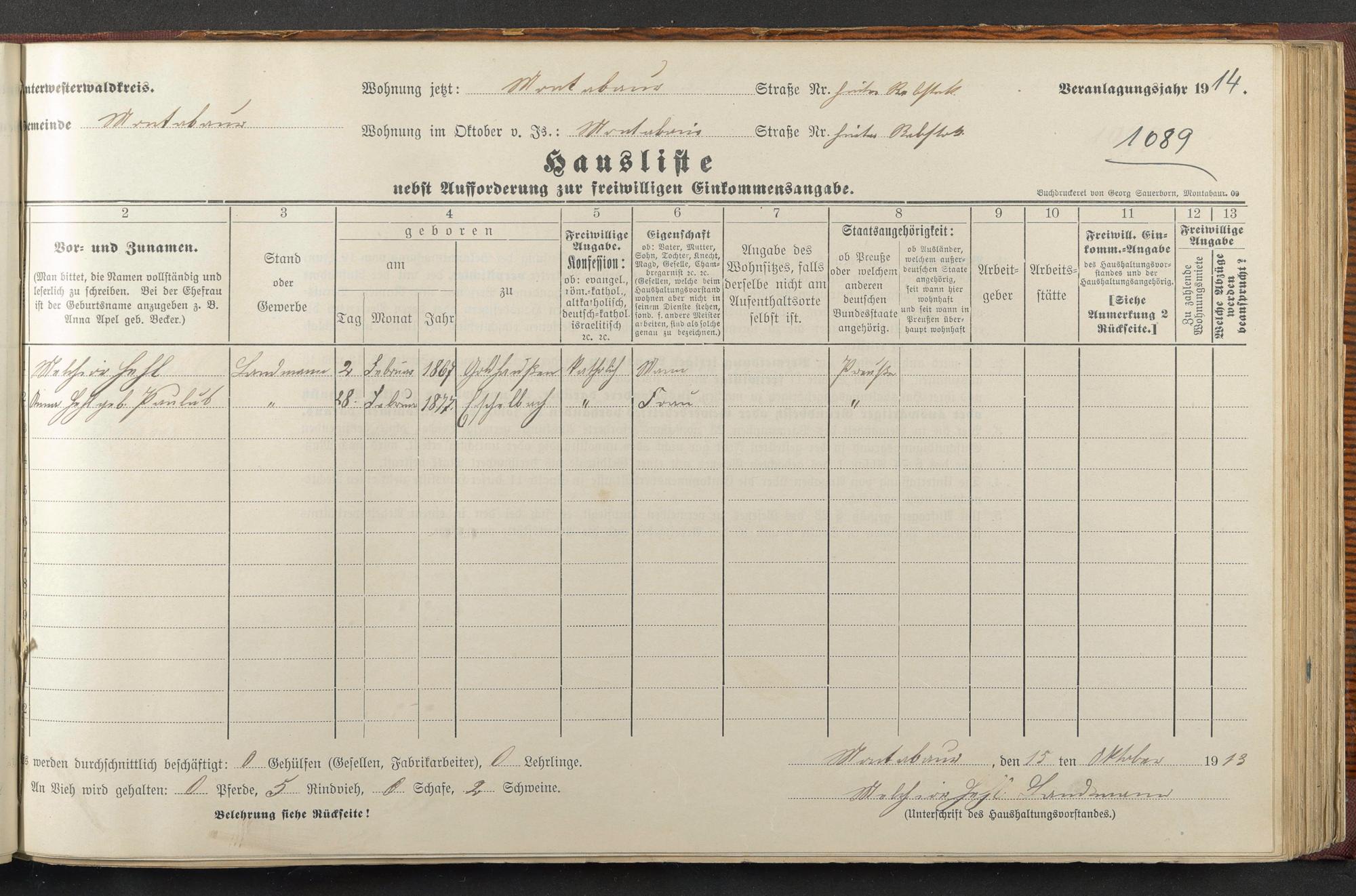Haushaltsliste 1914, Band II., Abteilung 4, A 279