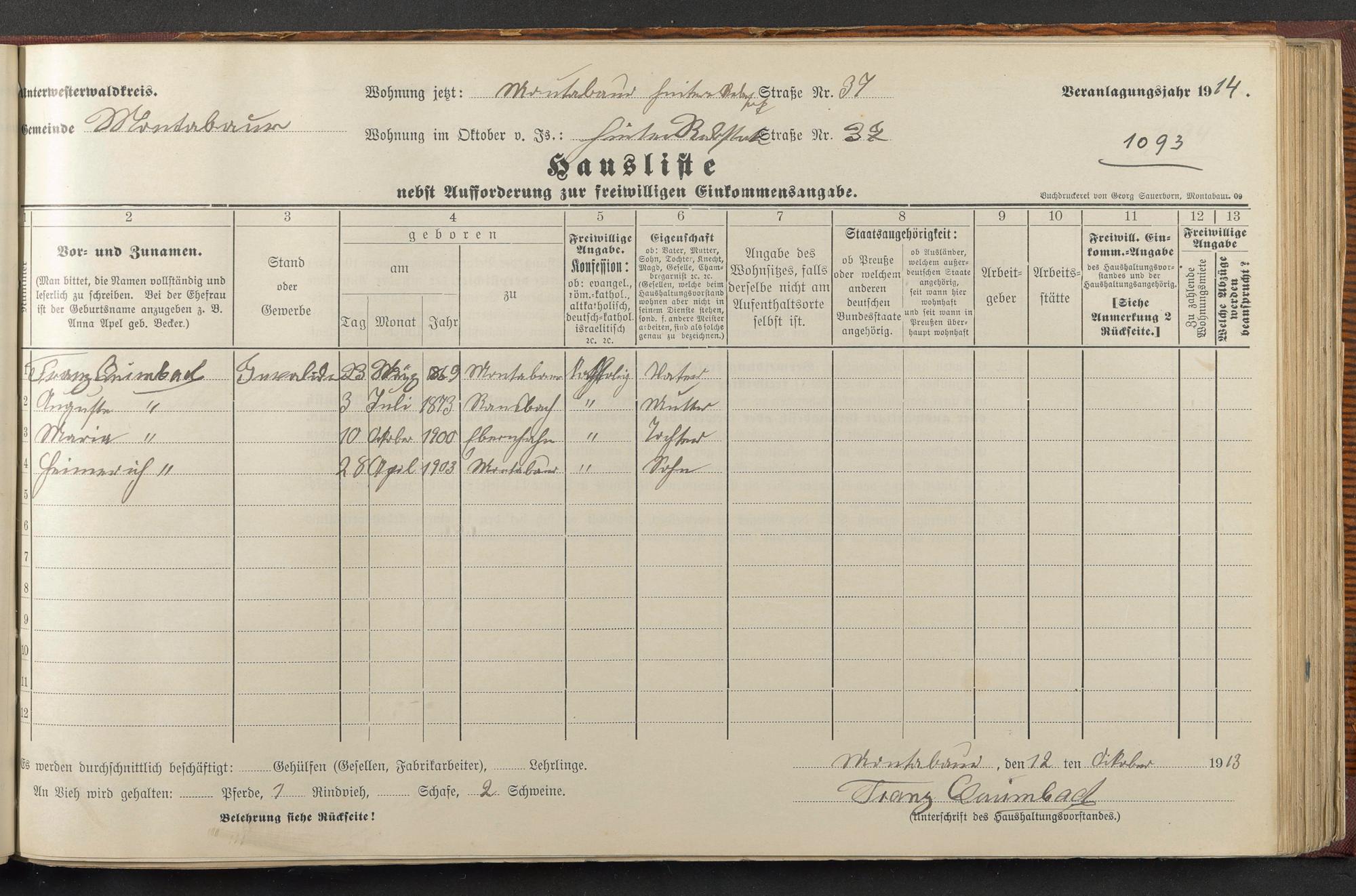 Haushaltsliste 1914, Band II., Abteilung 4, A 279