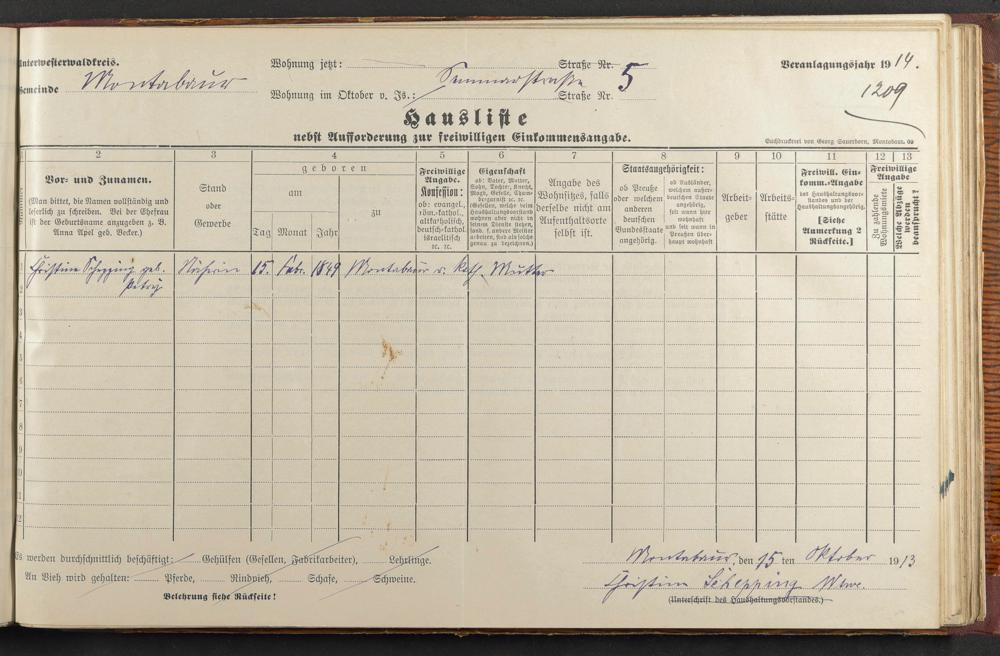 Haushaltsliste 1914, Band II., Abteilung 4, A 279
