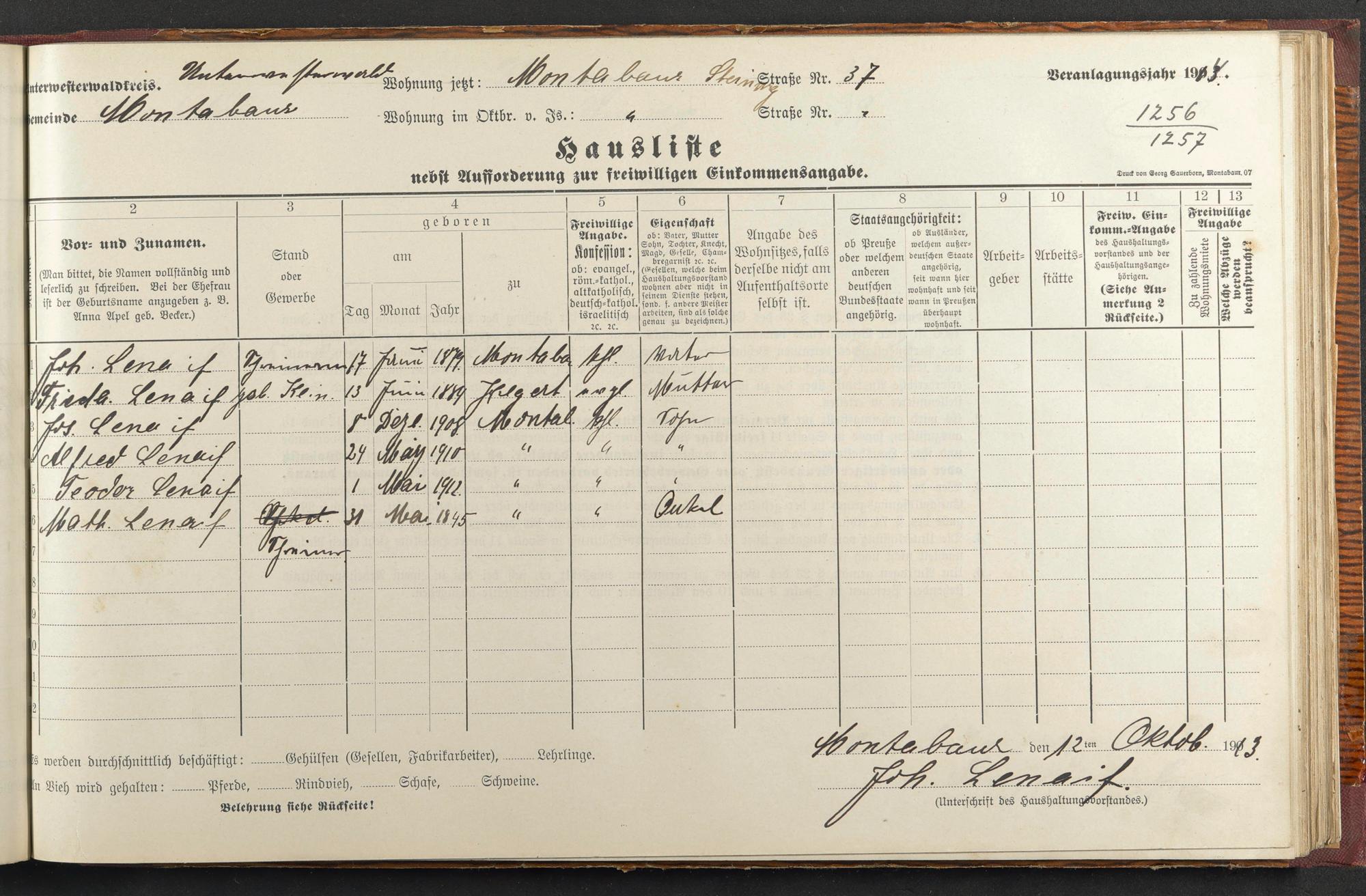 Lenaif, Johann Lenaif, Frieda geb. Klein Lenaif, Josef Lenaif, Alfred Lenaif, Theodor Lenaif, Mathias
