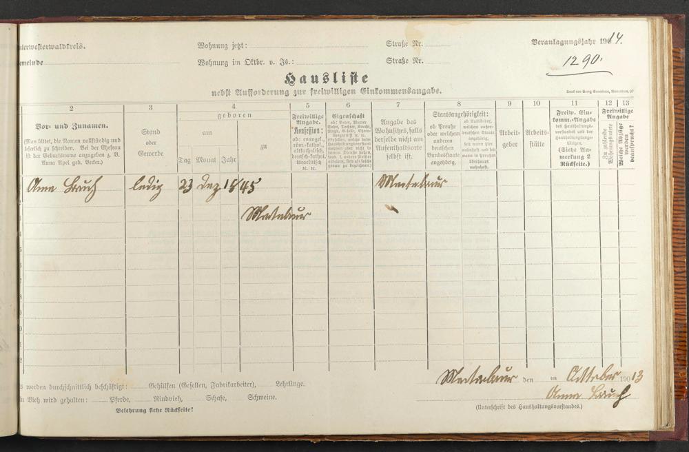 Haushaltsliste 1914, Band II., Abteilung 4, A 279