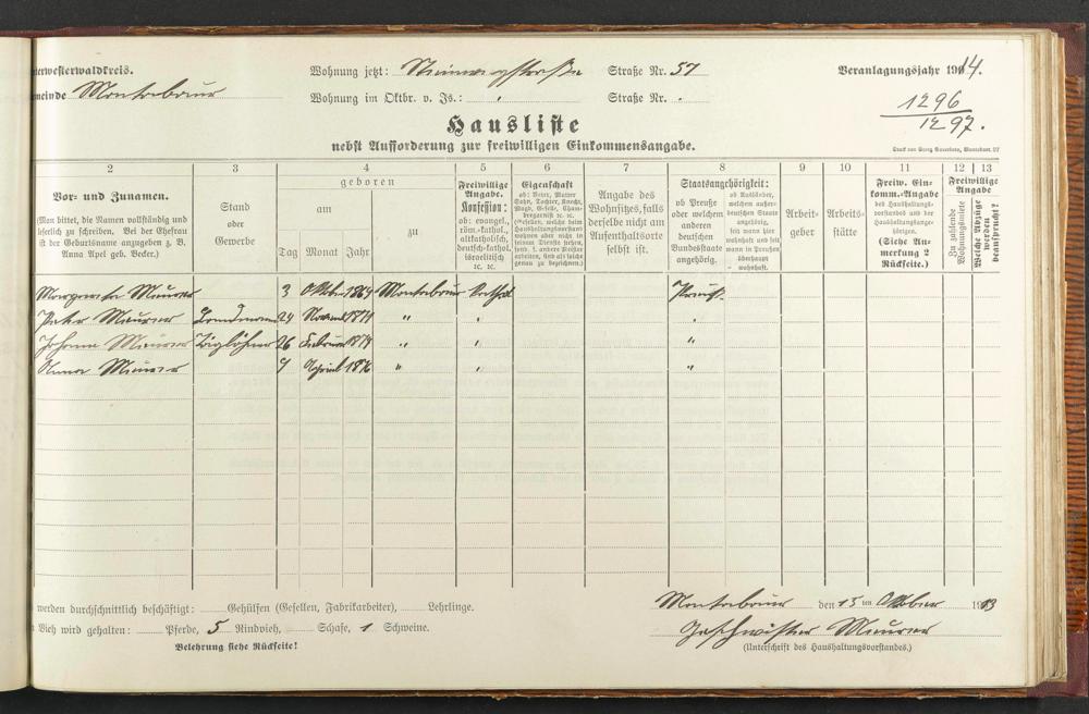 Haushaltsliste 1914, Band II., Abteilung 4, A 279