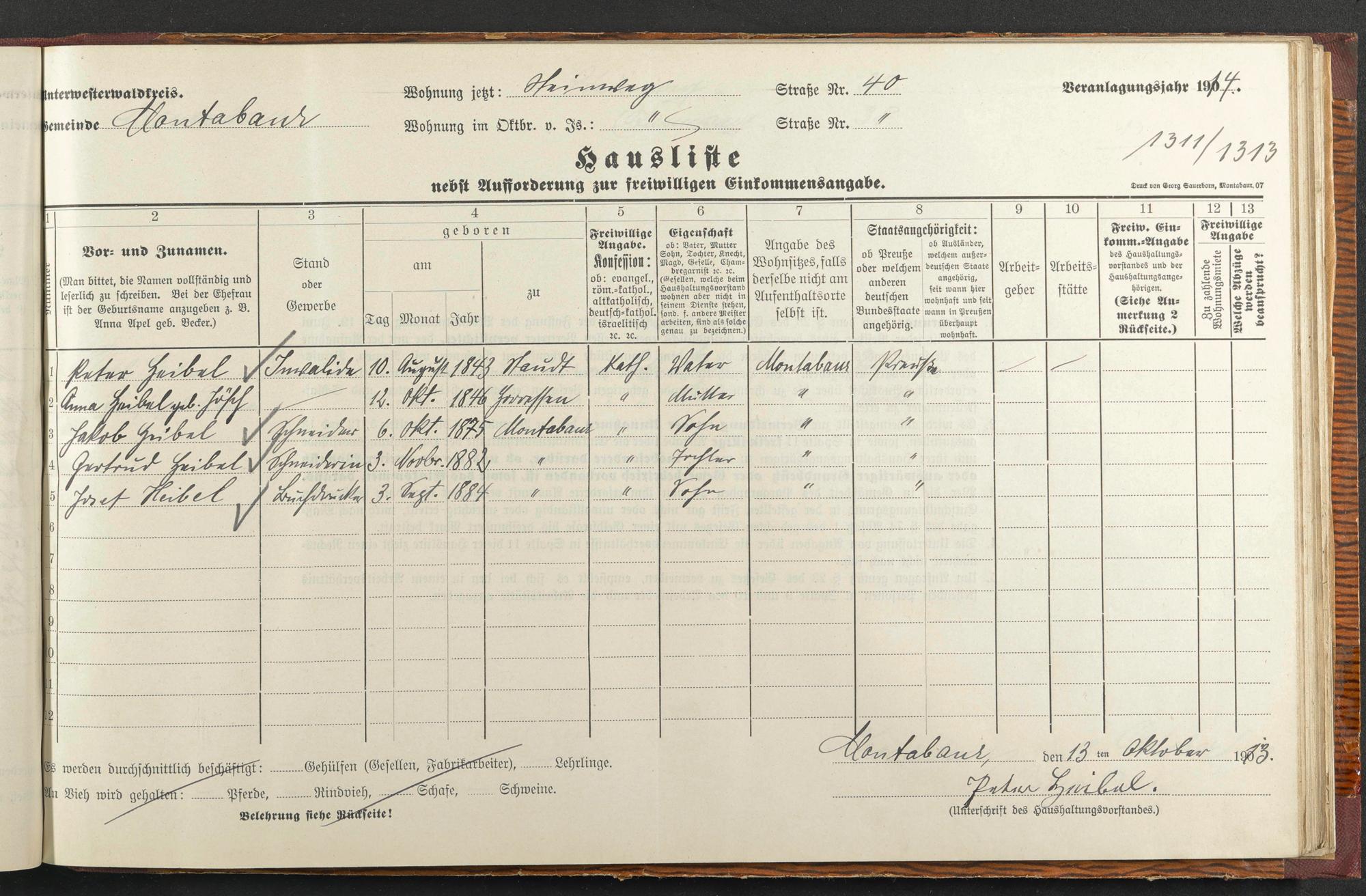 Haushaltsliste 1914, Band II., Abteilung 4, A 279