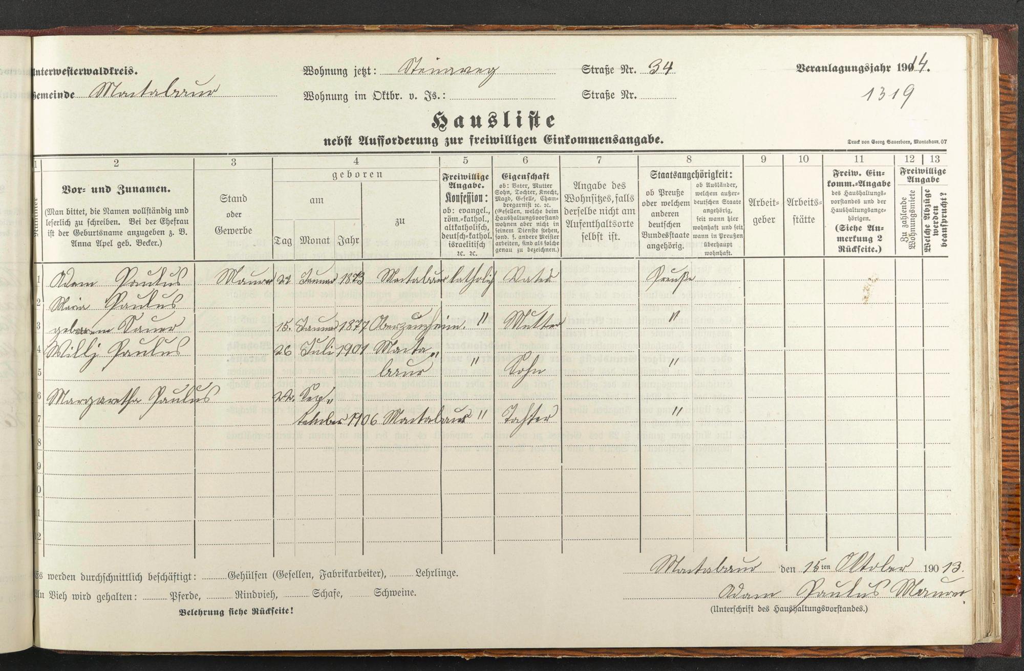 Haushaltsliste 1914, Band II., Abteilung 4, A 279
