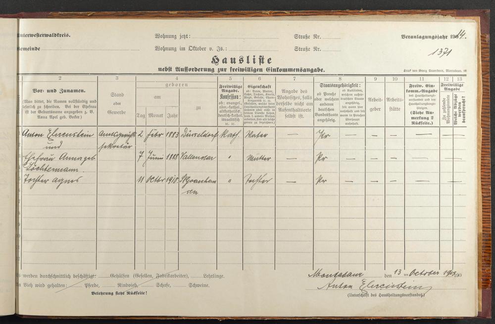 Haushaltsliste 1914, Band II., Abteilung 4, A 279