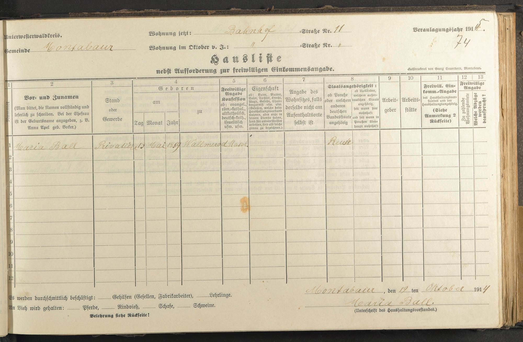 Haushaltsliste 1914/15, Coblenzer Straße bis Judengasse