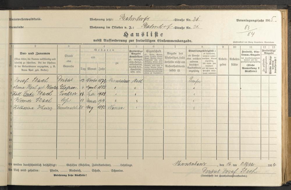 Haushaltsliste 1915, Band I., Abteilung 4, A 280
