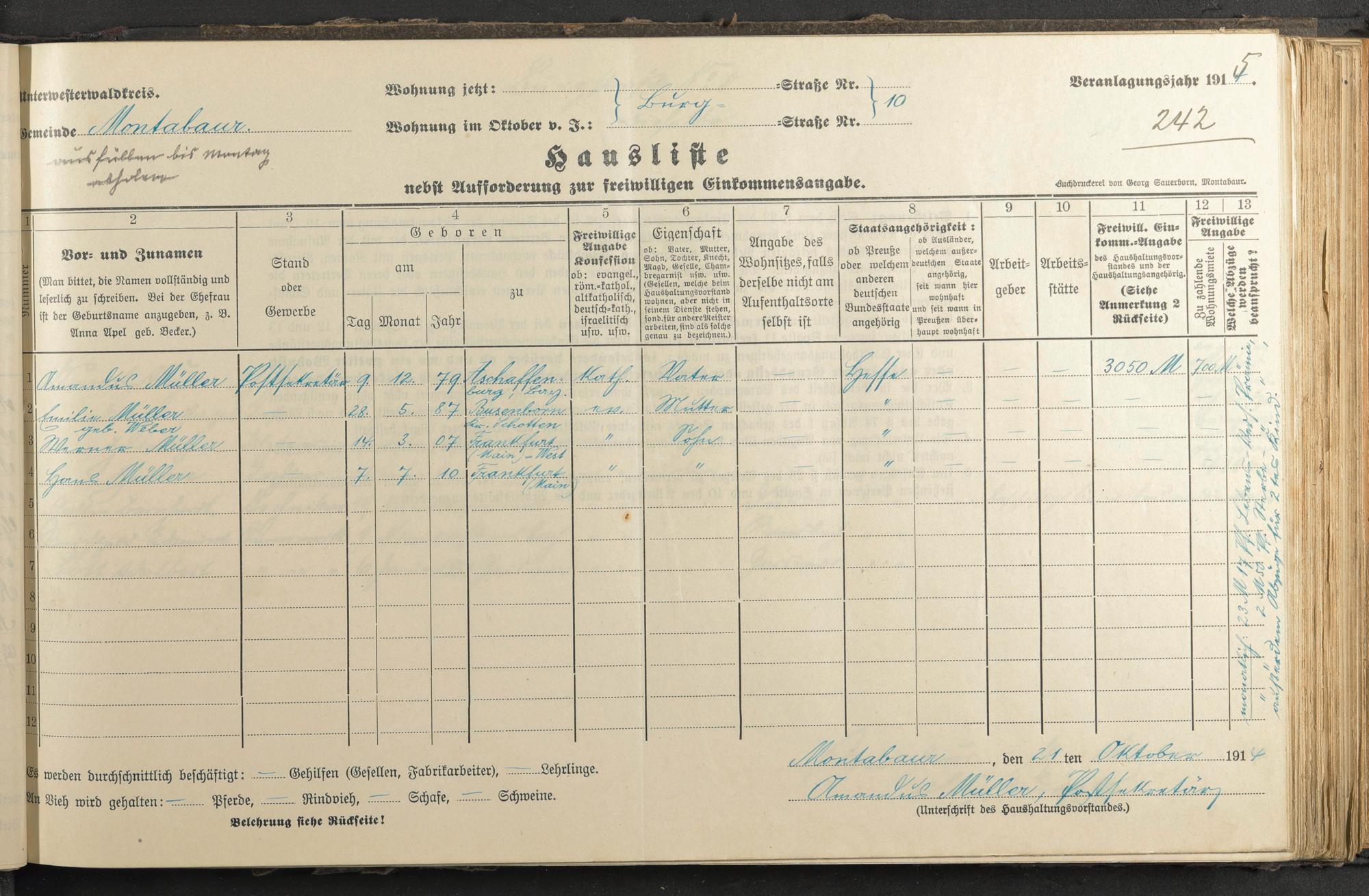 Haushaltsliste 1915, Band I., Abteilung 4, A 280