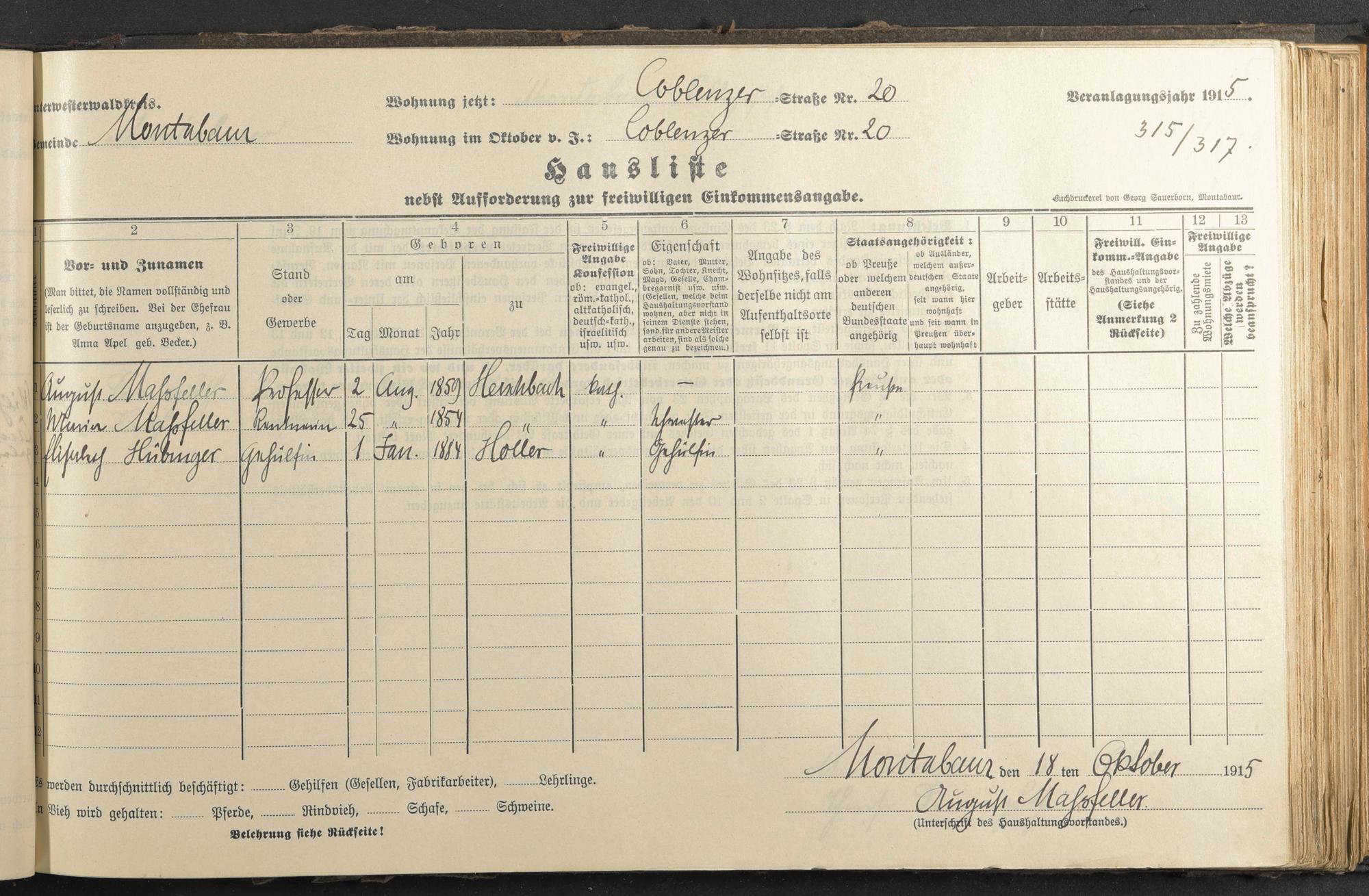 Haushaltsliste 1914/15, Coblenzer Straße bis Judengasse